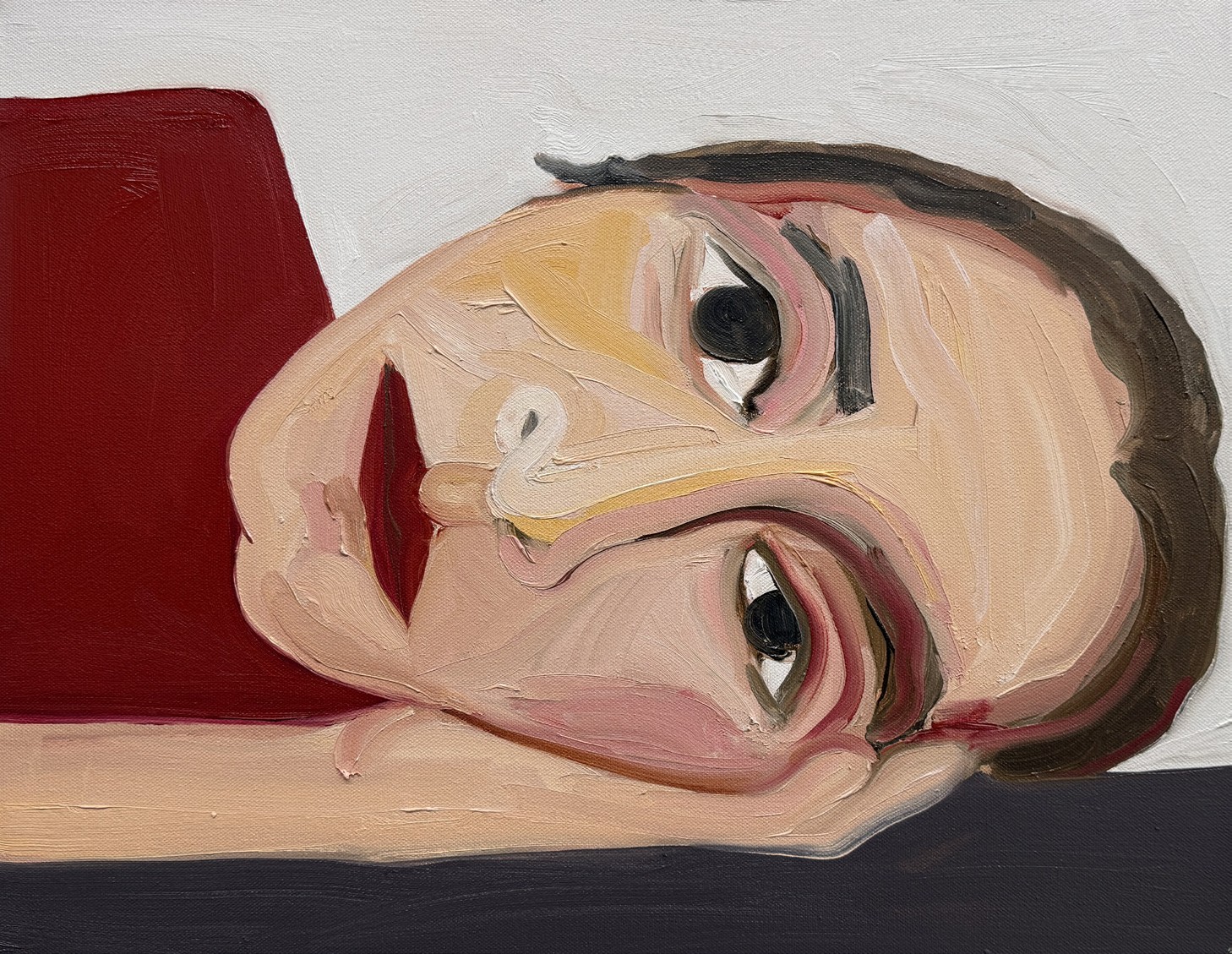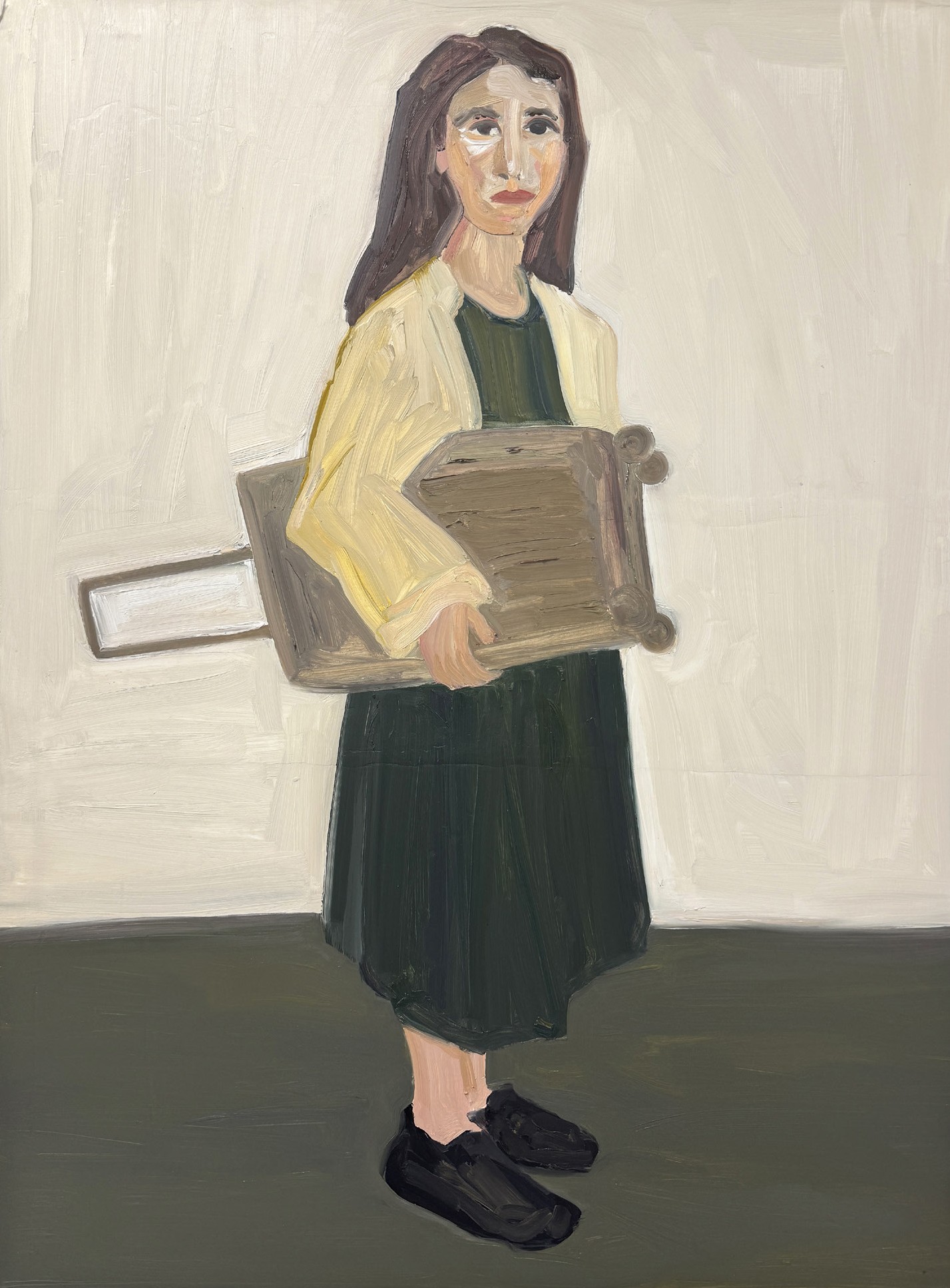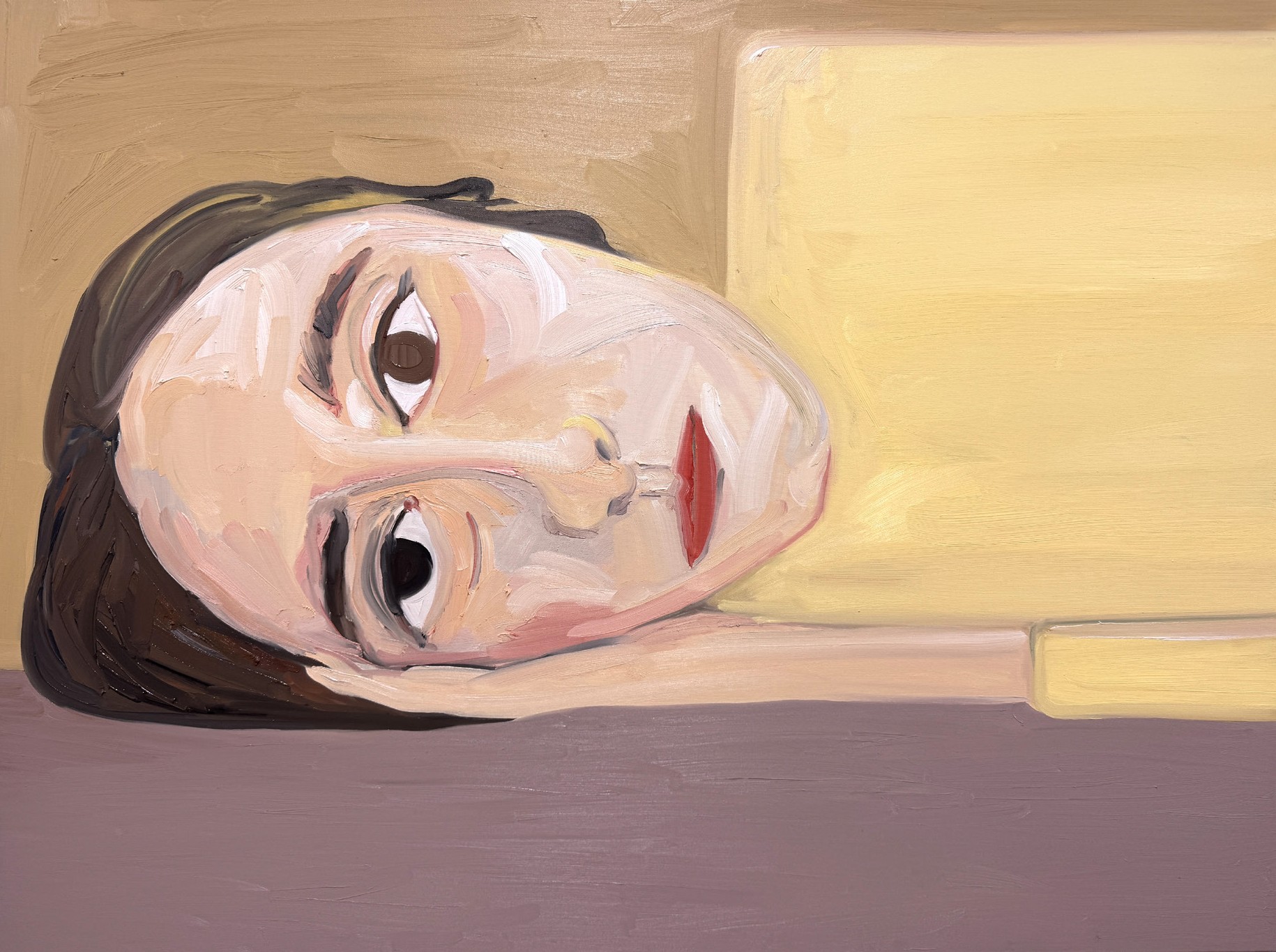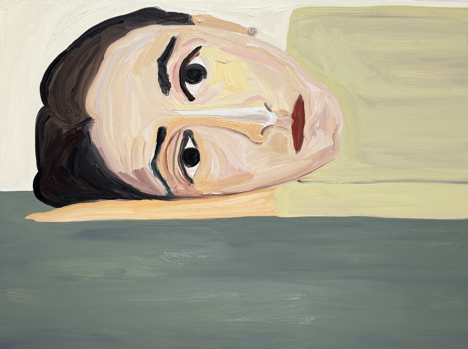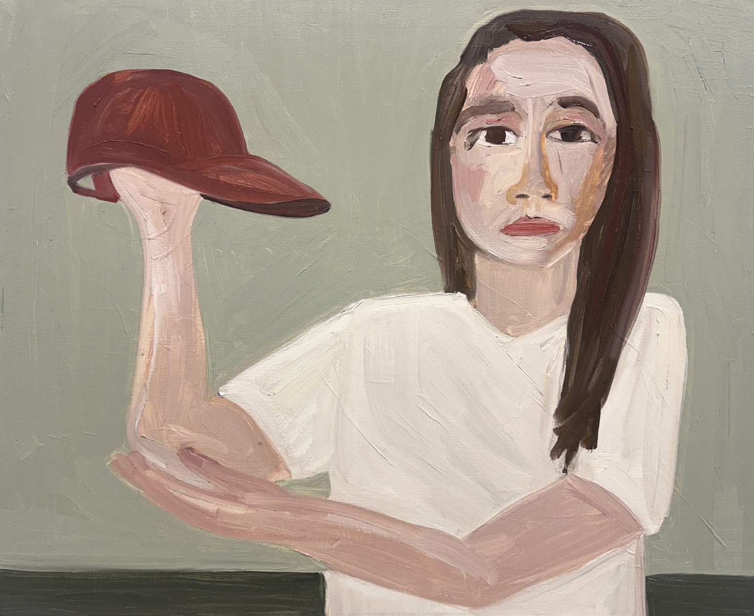 Phoebe Derlee uses bold, decisive brushstrokes to create paintings that are both intimate and emotionally distanced, often using herself as the subject. Her figures frequently appear isolated against vivid, monochromatic backgrounds, with her works ranging from small to large-scale canvases. Derlee consistently engages with the human form and the ways it can be reimagined or reconfigured.