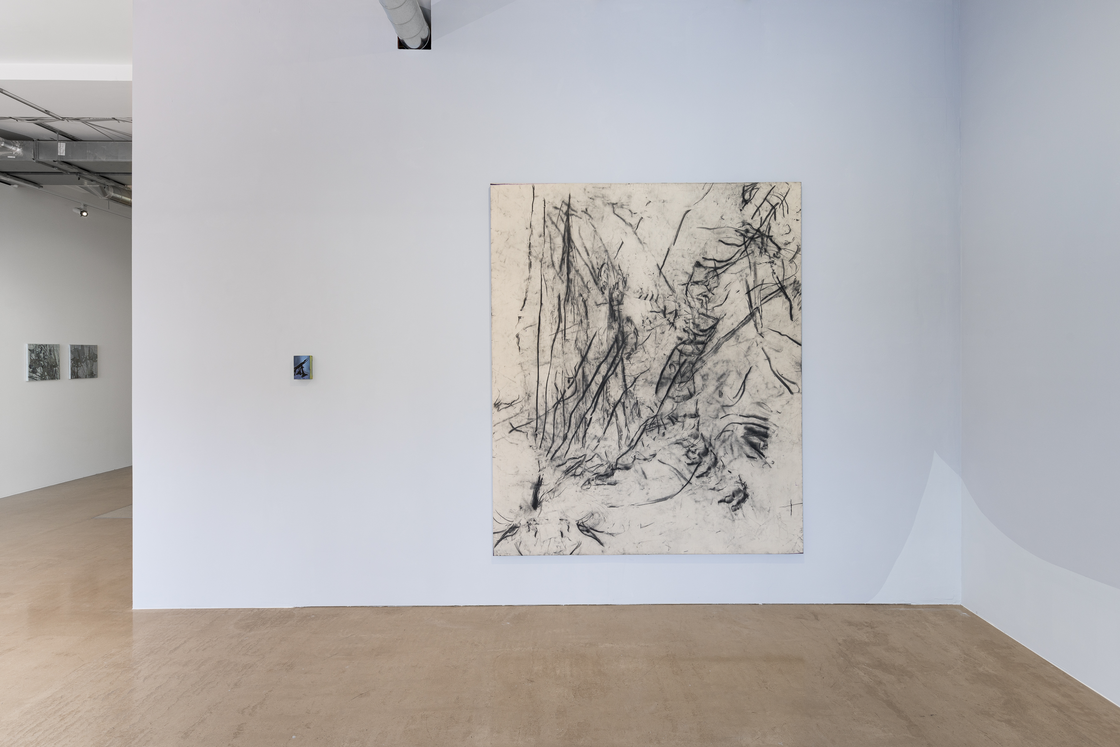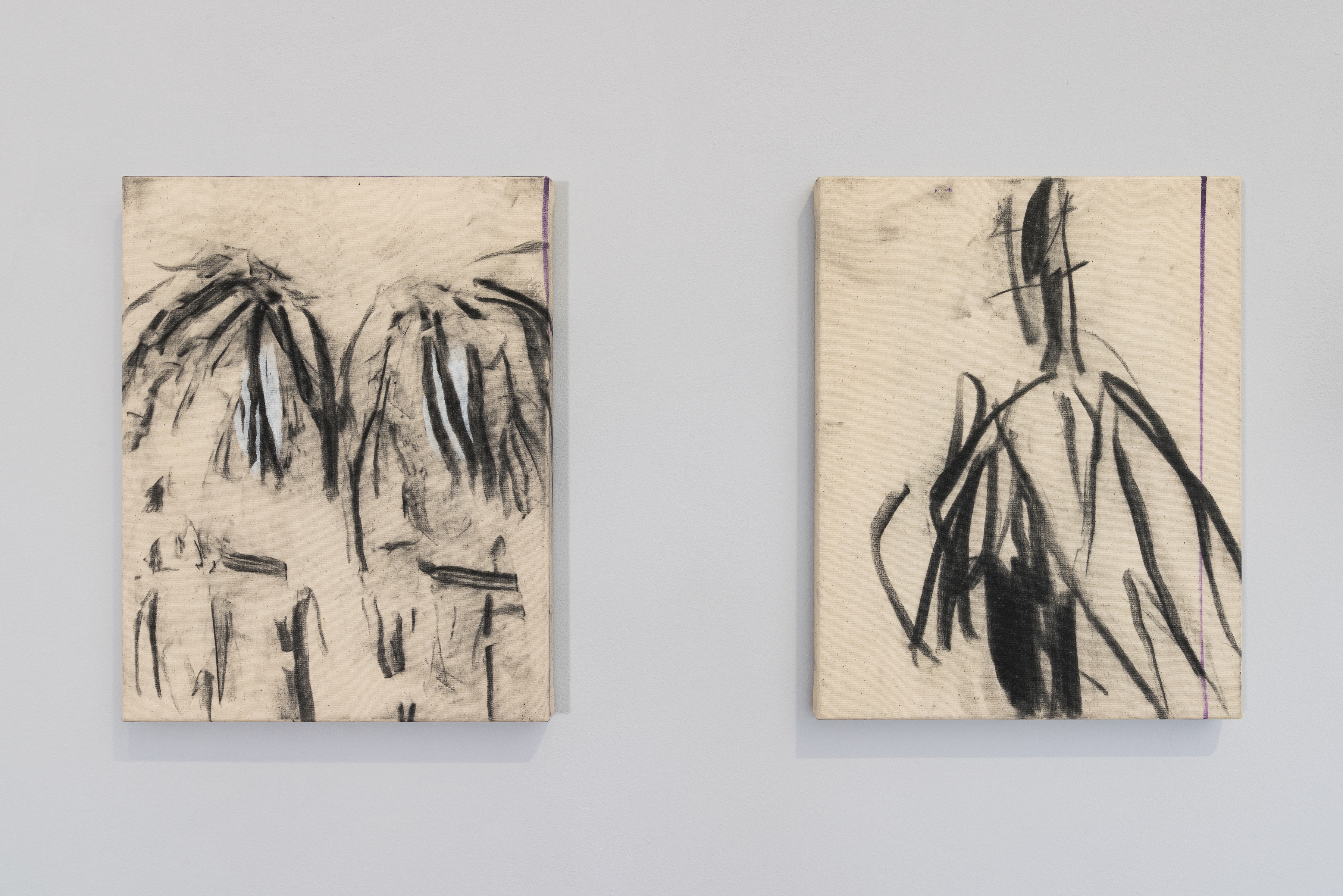 The exhibition title EVEN DEMONS HAVE DEMONS is tautological and redundant on a linguistic level. Semantically, it alludes to a change, even an intensification, of something familiar through that redundancy. Heinrich chose this title because he recognizes a form of expansion, one that surprises and yet seems obvious, in his artistic work. His charcoal drawings may initially appear excessive and give the impression of a single, strong gesture. In reality, they emerge through a process of constant reconsideration, reaction, and decision-making.