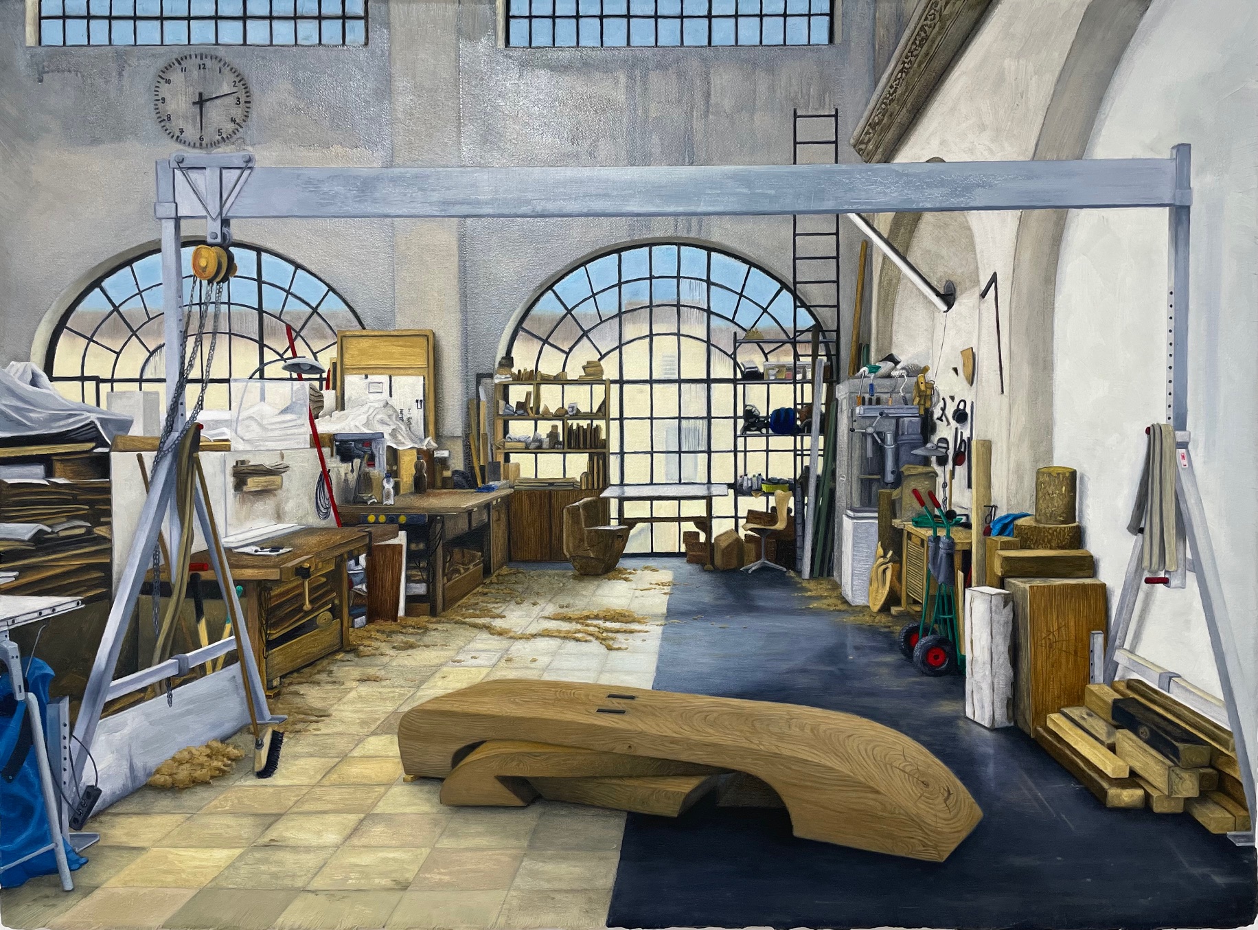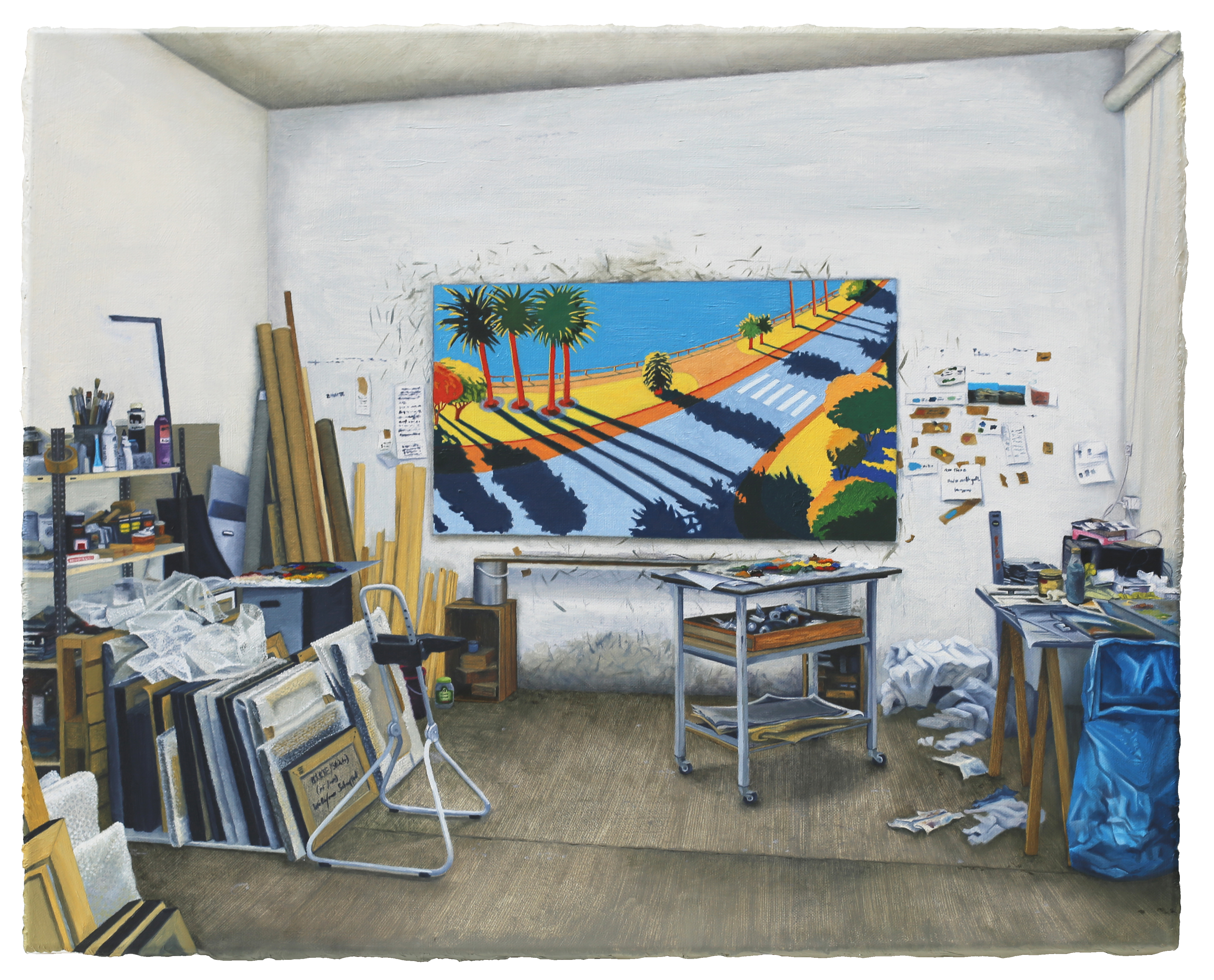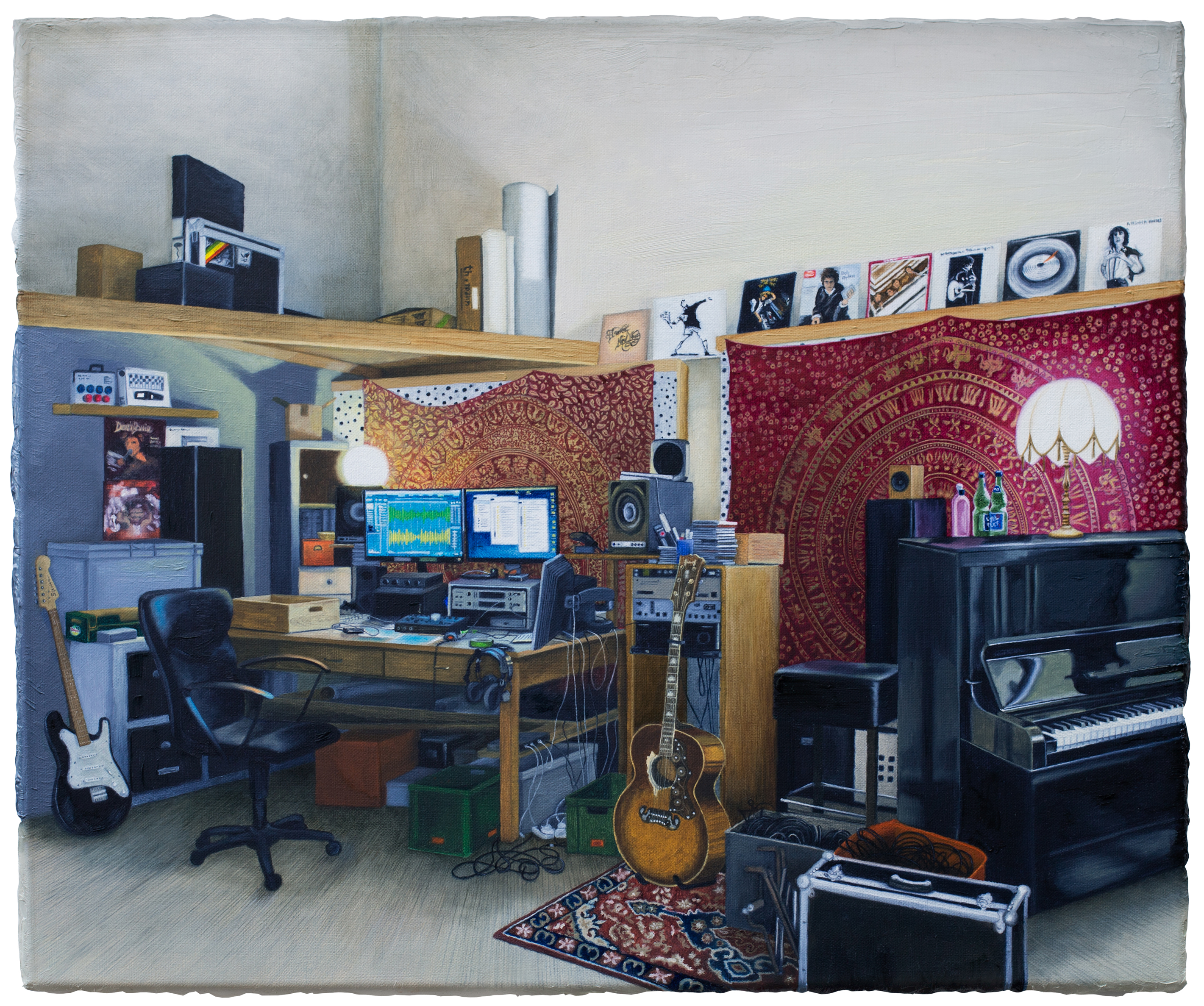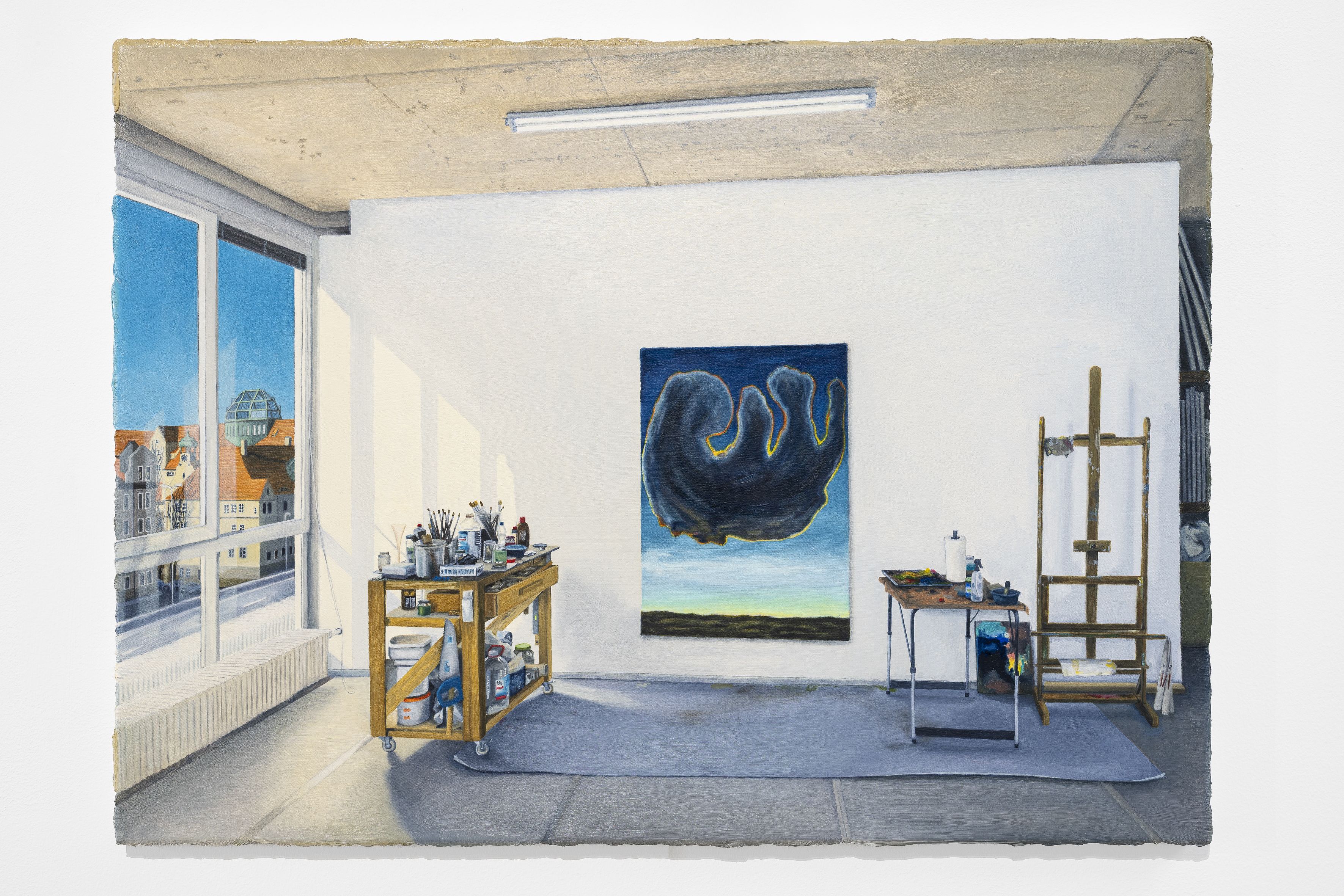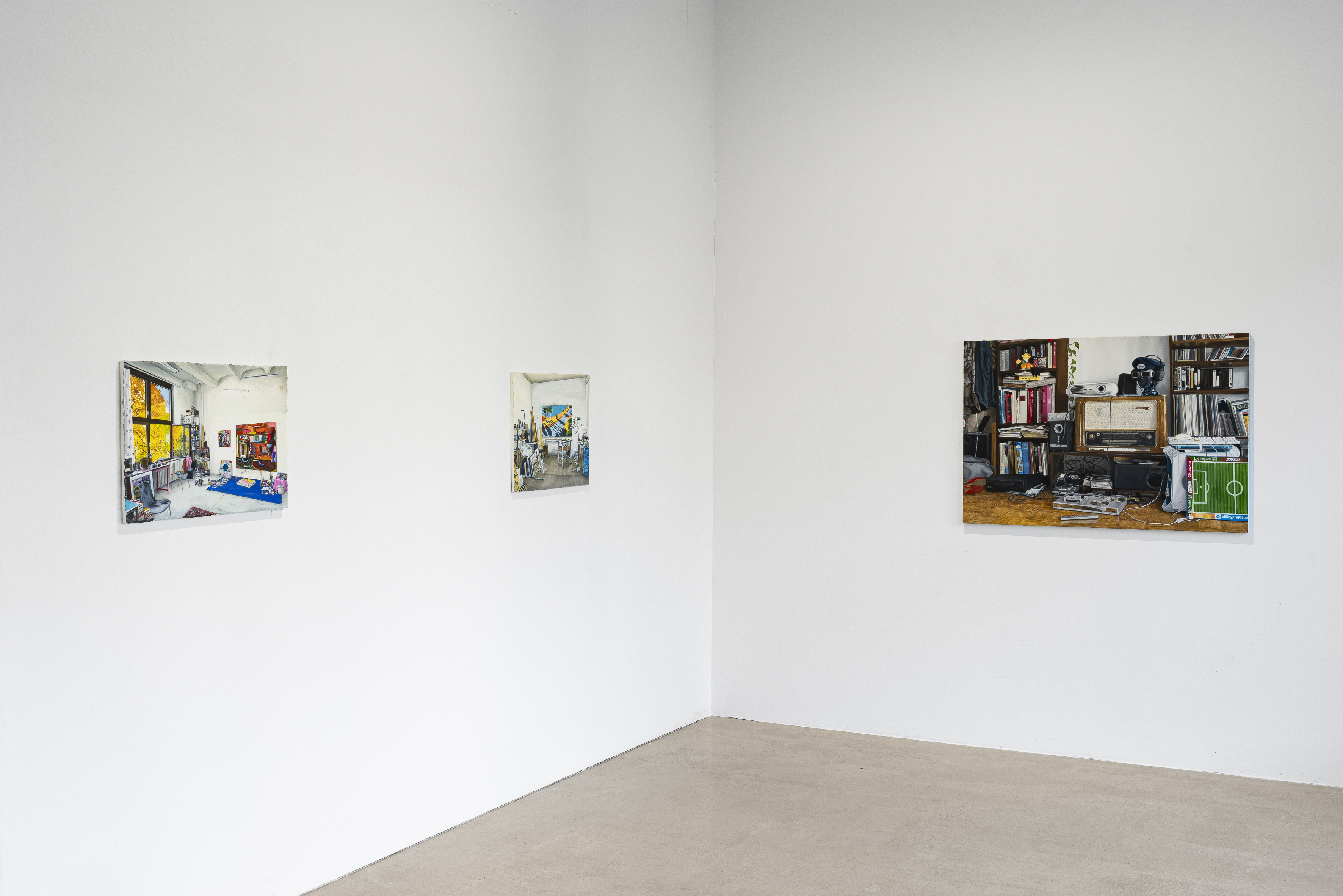 Working in an Old Master–like manner, the artist captures moods and inconspicuous details with fine brushstrokes, thereby rendering visible the interaction between space and its inhabitant. A particular focus lies on the studios of artists she knows personally, as well as on the many traces of the artistic process, which she powerfully captures in her paintings.