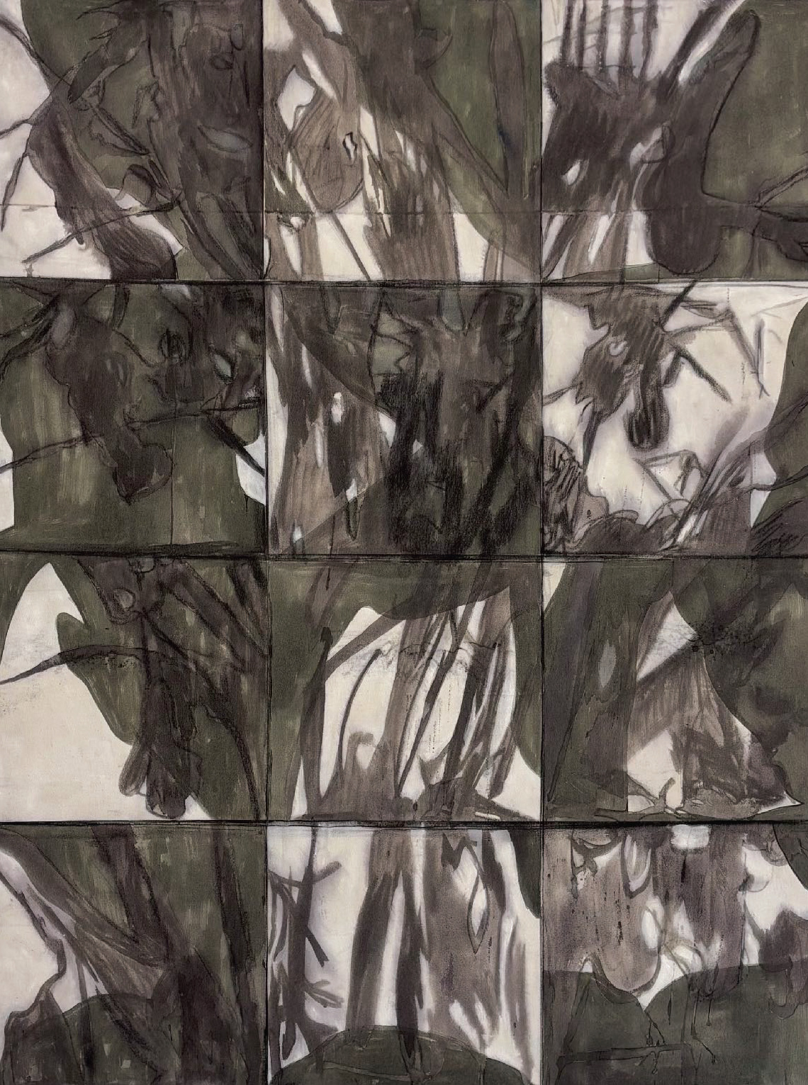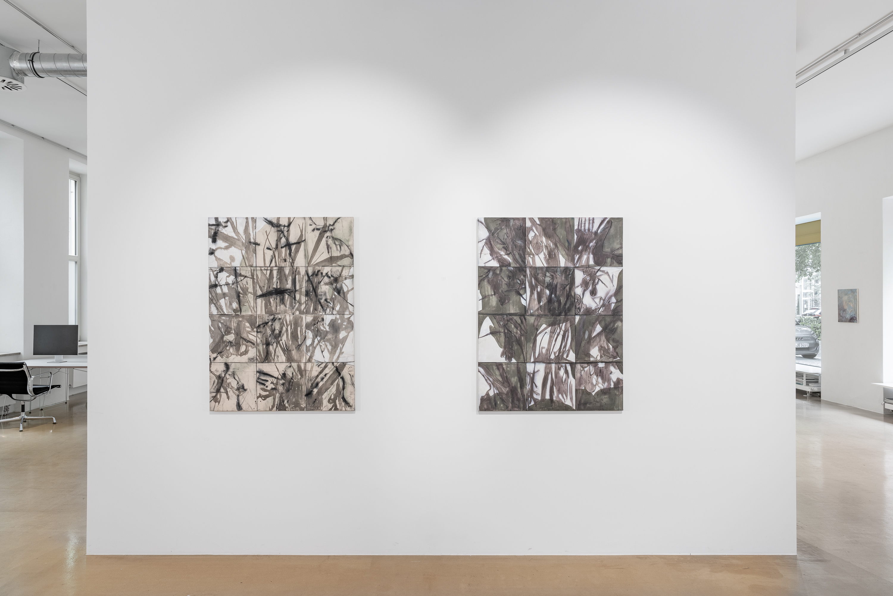 Hannes Heinrich draws inspiration from Paul Thek’s Portrait of Peter Hujar, fragmenting his own silhouette across a grid structure. The result is a series of shifting appearances that oscillate between visibility and withdrawal—expressing the tension between self-exposure and self-concealment.