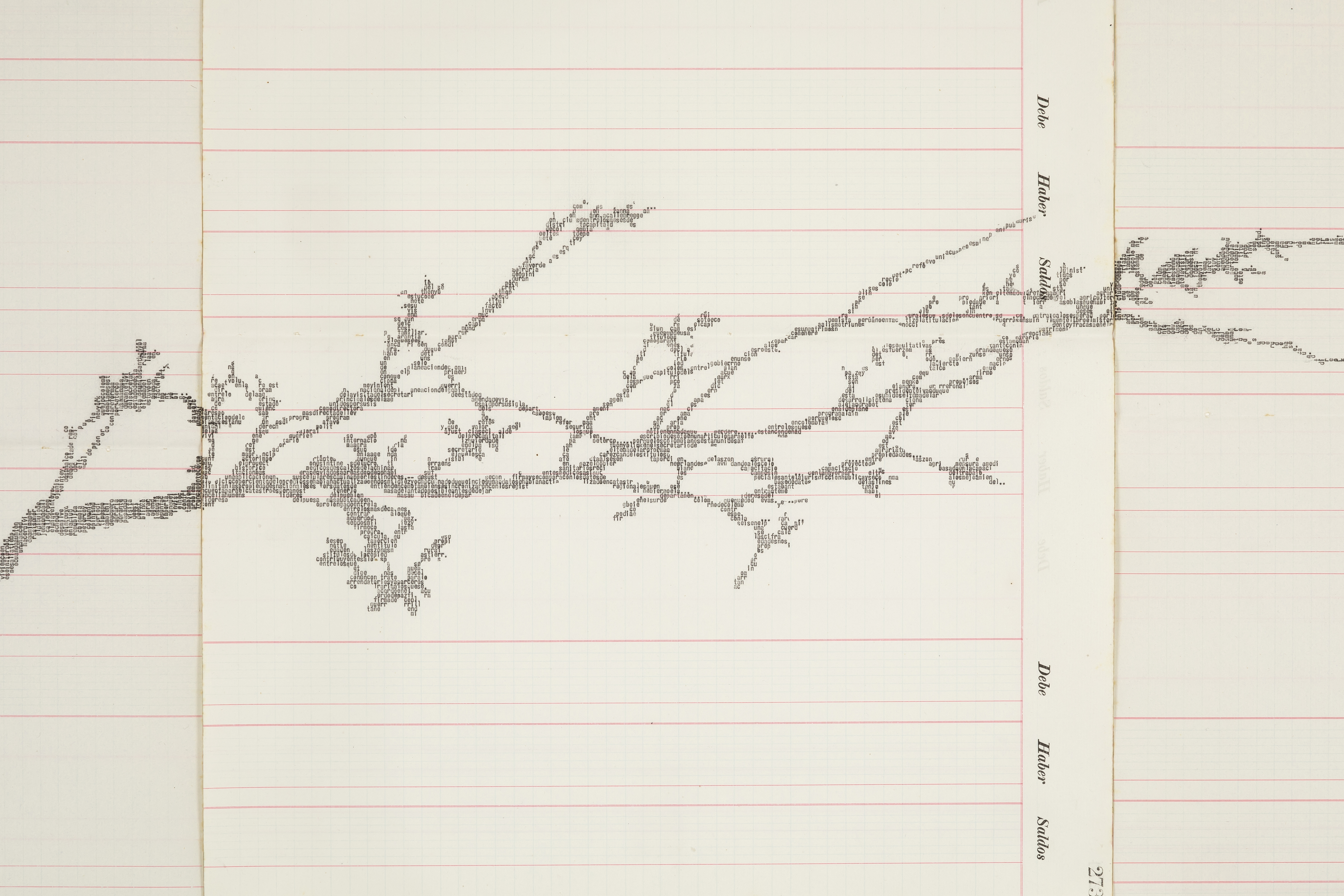 We show poetic works by Johanna Calle, typed with a typewriter. In her expanded drawing practice, which is combined with intensive material research, the Bogotá-based artist sheds light on important social and political issues such as social inequality, ecological concerns, or the loss of cultural identity.