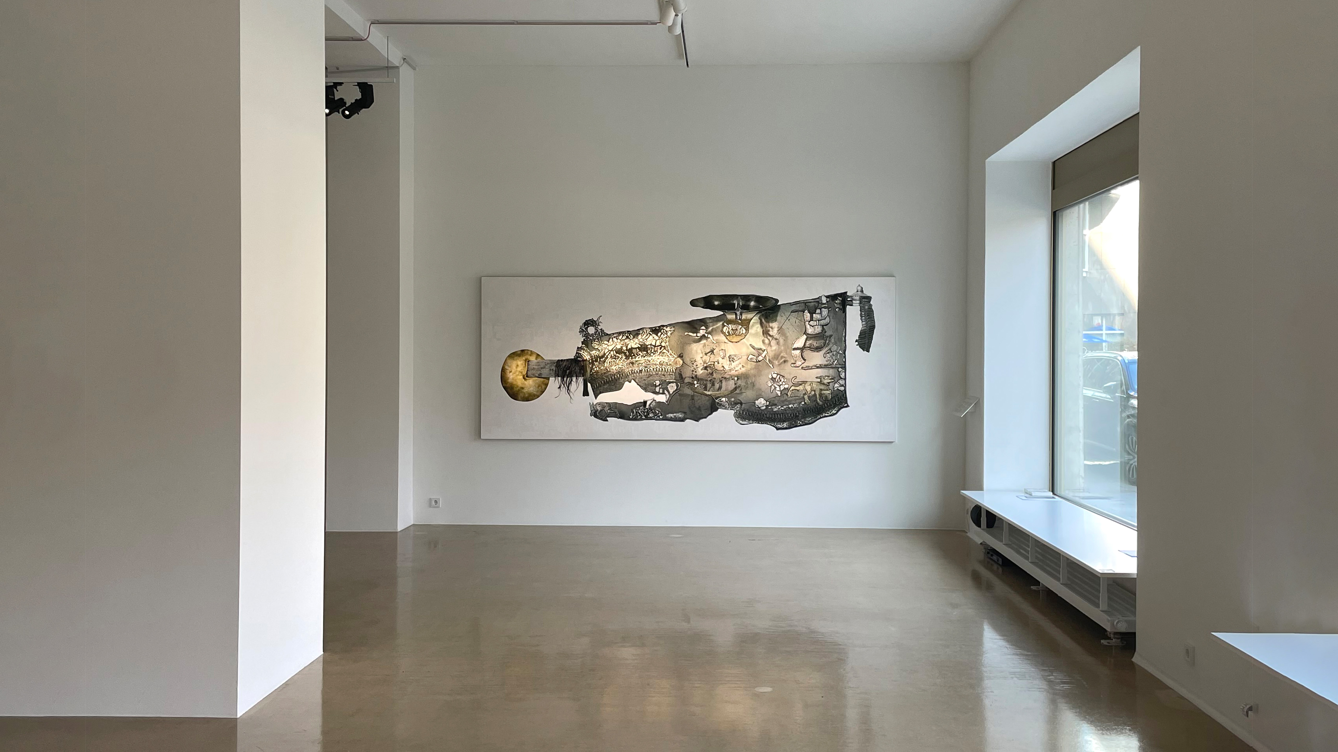 Die großformatigen, panoramischen Fotomontagen in der Ausstellung sind eine Symphonie aus Bruch und Heilung, während die Audiokunst den Raum mit einer universellen Sprache erfüllt und eine rhizomatische, forschungsbasierte Fiktion schafft, in der Geschichten und Historien miteinander verschmelzen.